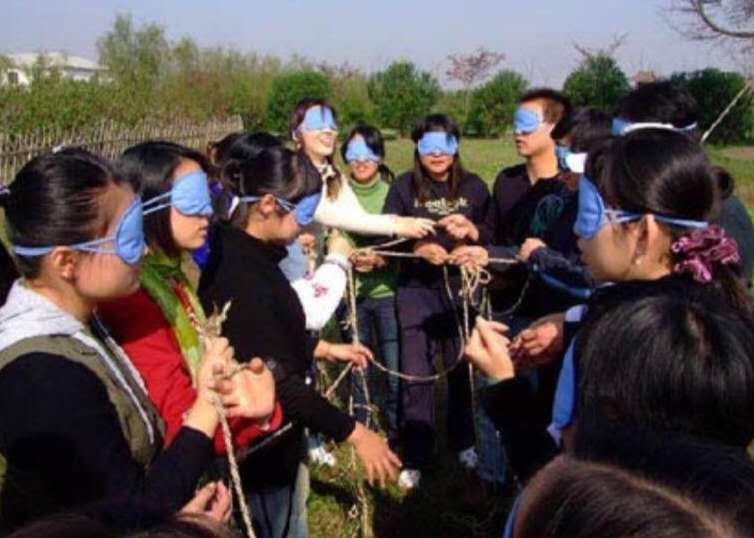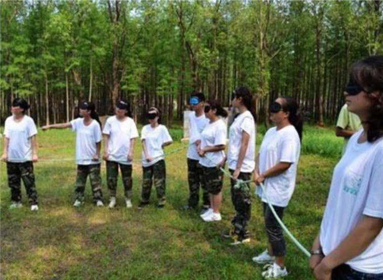 盲人方陣,也叫黑夜協(xié)作,這是一個以團隊挑戰(zhàn)為主的項目。用教練給的繩索圍成一個面積最大的正方形,看似簡單吧。但是當(dāng)所有的人被蒙上眼睛的時候,隊員會發(fā)現(xiàn),原來難度一點也不小,并且大家將體會到團隊的指揮、溝通、協(xié)調(diào)能力還真不能被忽視。一群盲人在黑暗中摸索,他們必須集體完成一個十分精細的任務(wù)。在茫然無助的探索中,管理中的現(xiàn)象在此都表露無遺,很值得學(xué)員去體味和思考。