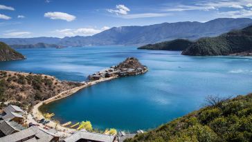 第一大天然淡水湖,被譽為“高原明珠”。湖的西北面,雄偉壯麗的格姆山巍然矗立,這即是摩梭人人為之崇拜而人格化的格姆女神。湖的東南面,與草海連接,這里牧草豐盛,牛羊肥美,淺海處茂密的蘆葦隨風蕩漾,蔟蔟的花草迎風招展,每到冬季,天鵝、黑頸鶴等珍稀候鳥數(shù)以萬計棲息于此,平添一種生氣,一種景致。