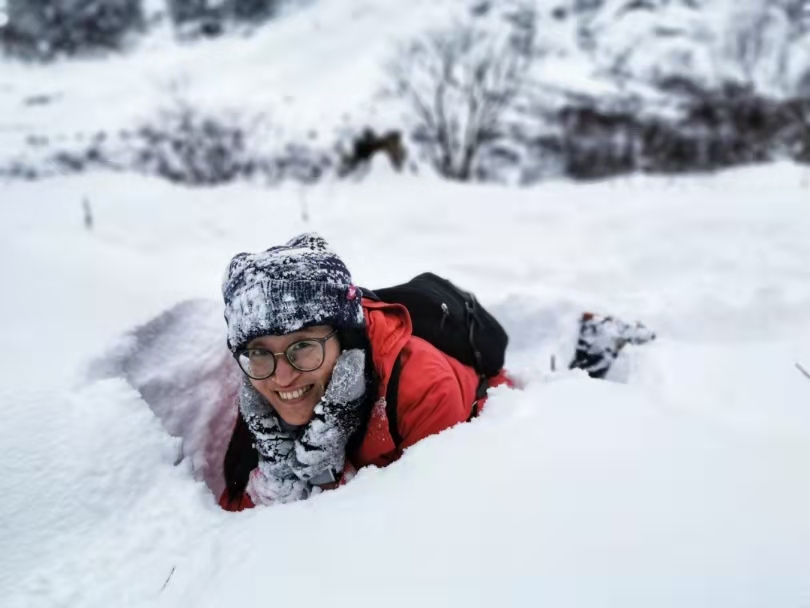 乘坐索道來到冰川公園,飄飄灑灑的雪花,讓前來登山的市民、游客驚喜不已。大家難以掩飾內(nèi)心的激動,紛紛沉醉在這場春雪里。