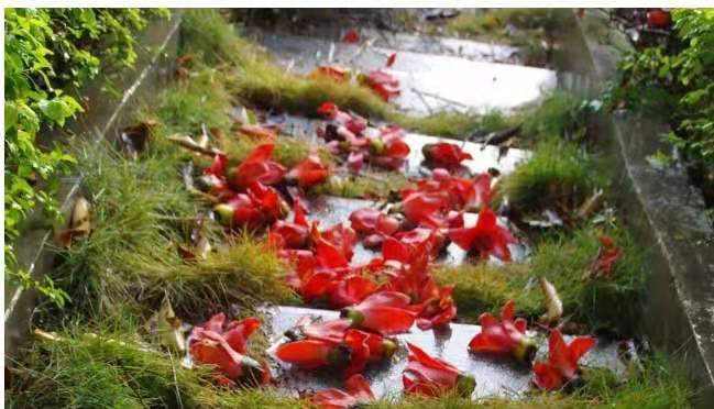 有人贊木棉是英雄樹,是君子花。除其蒼勁昂揚(yáng)、筆直偉岸的身軀外,大概也因其花開得熱烈,落得也壯烈。花期一過(guò),木棉花絕然落土。樹下落紅無(wú)數(shù),但花不褪色、不萎靡,依然保持著在枝頭的形色,不容半點(diǎn)凋零。當(dāng)代詩(shī)人舒婷也為之贊嘆。