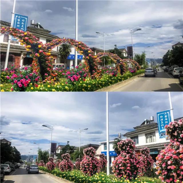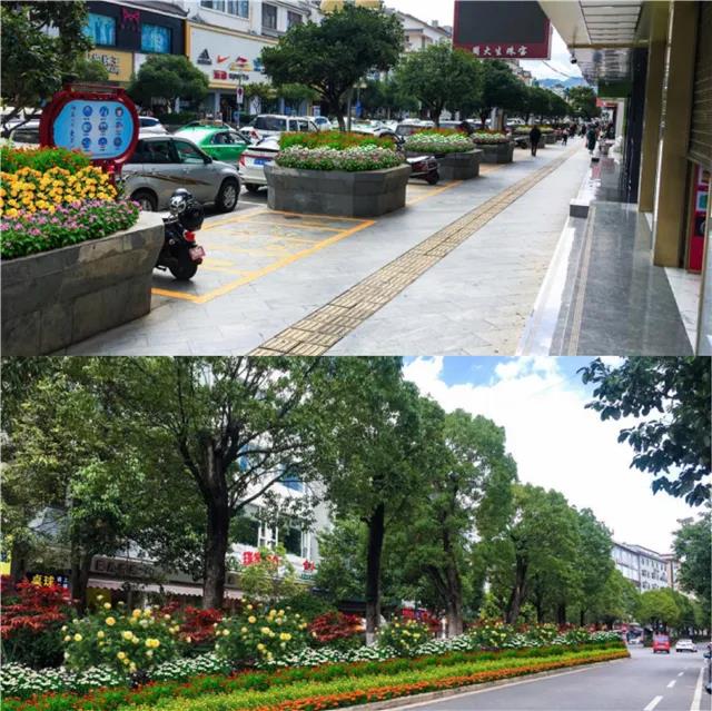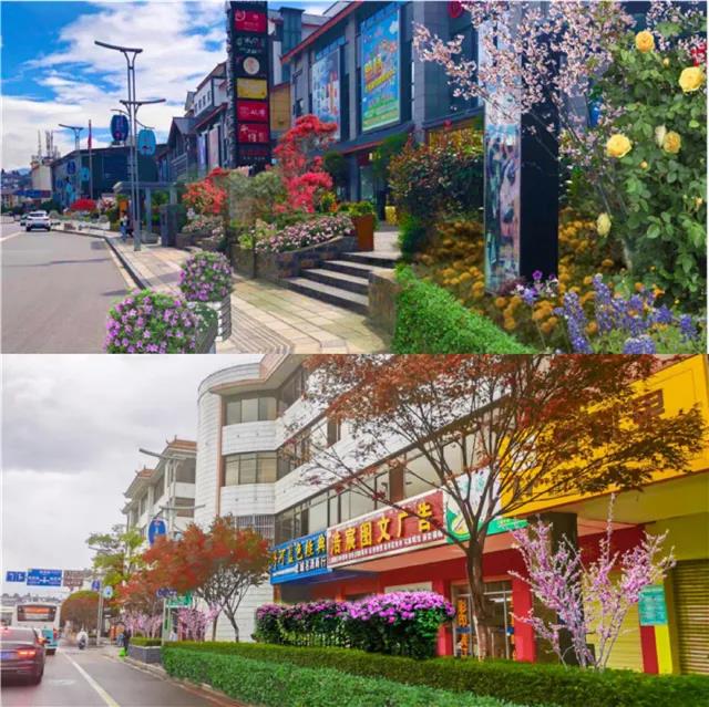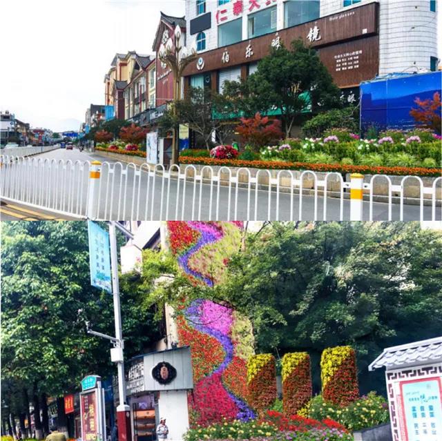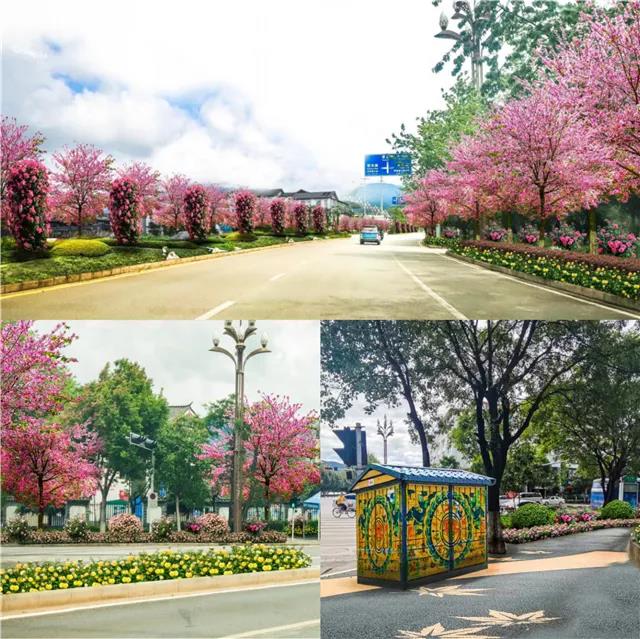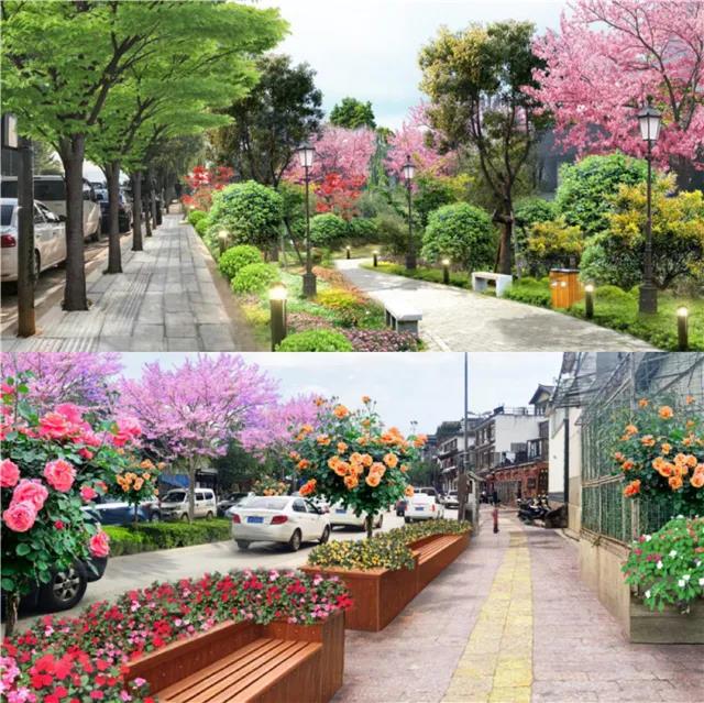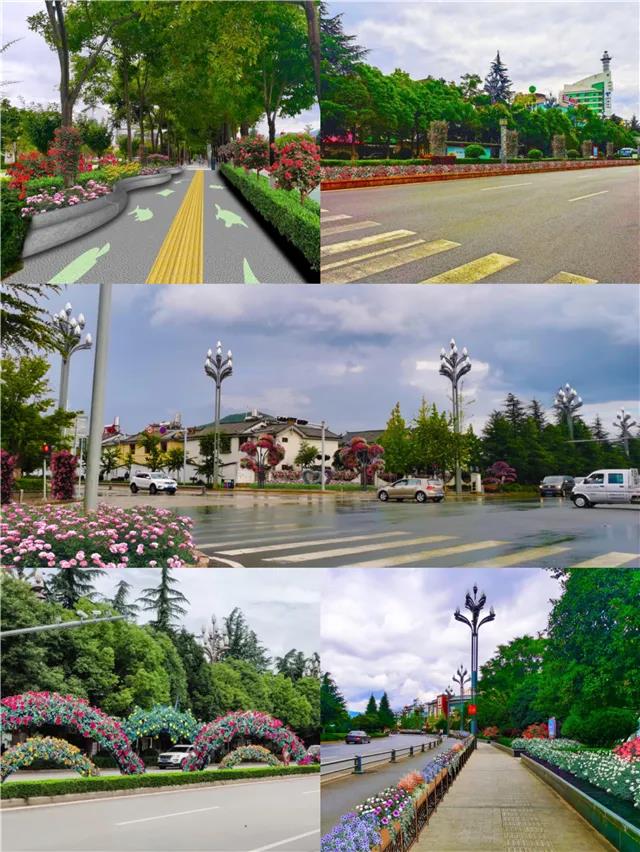 ?;勐纷鳛槌鞘械闹行母傻?,在其景觀設(shè)計(jì)中,拆除部分人流密集交會區(qū)域花池,以時令盆花為主,結(jié)合古城區(qū)高效花卉園等花卉產(chǎn)業(yè),在原有綠化帶中央安置立體花卉裝置,放置以紅粉為主色的時令花卉,形成以本土紅色花卉產(chǎn)業(yè)為主題的紅色花卉景觀大道,以“一街一景”配合“一縣一業(yè)”提升旅游城市品牌。